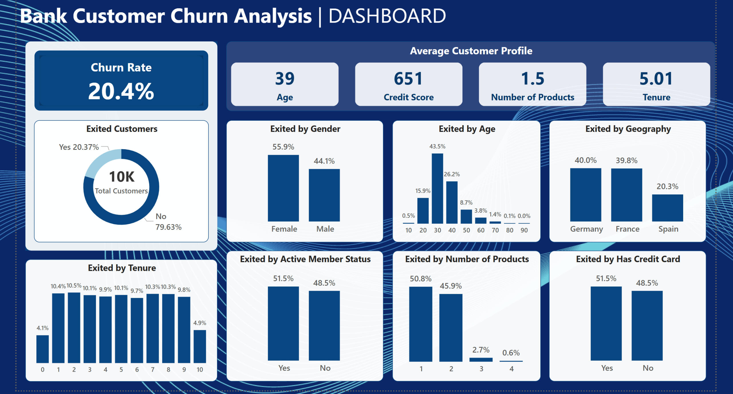 In this two-part project, I've combined technical and strategic business analysis. Using bank customer data, I created an interactive Power BI dashboard to uncover churn patterns, then developed a business case with targeted customer retention strategies.