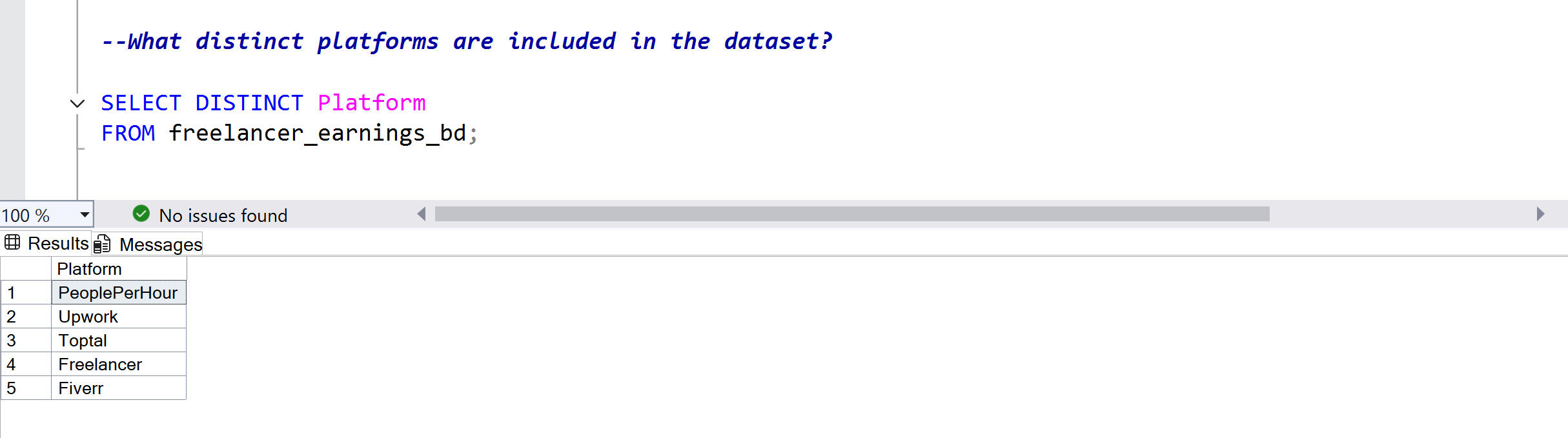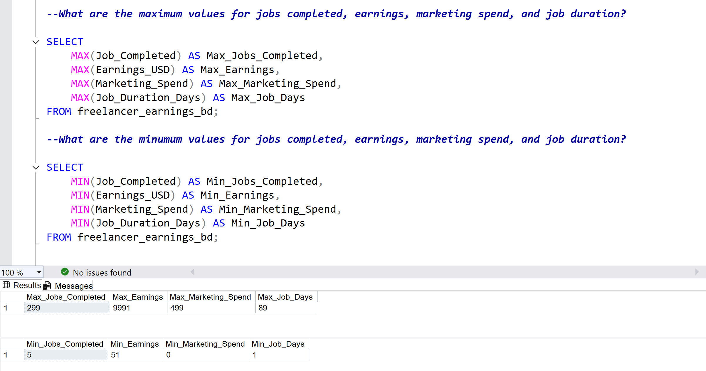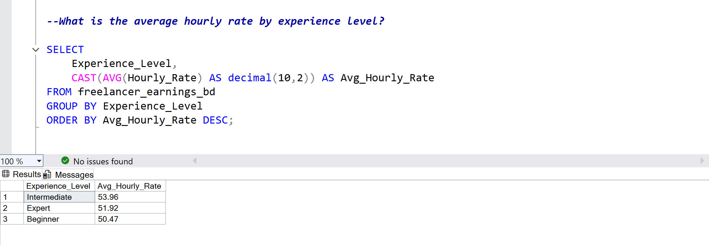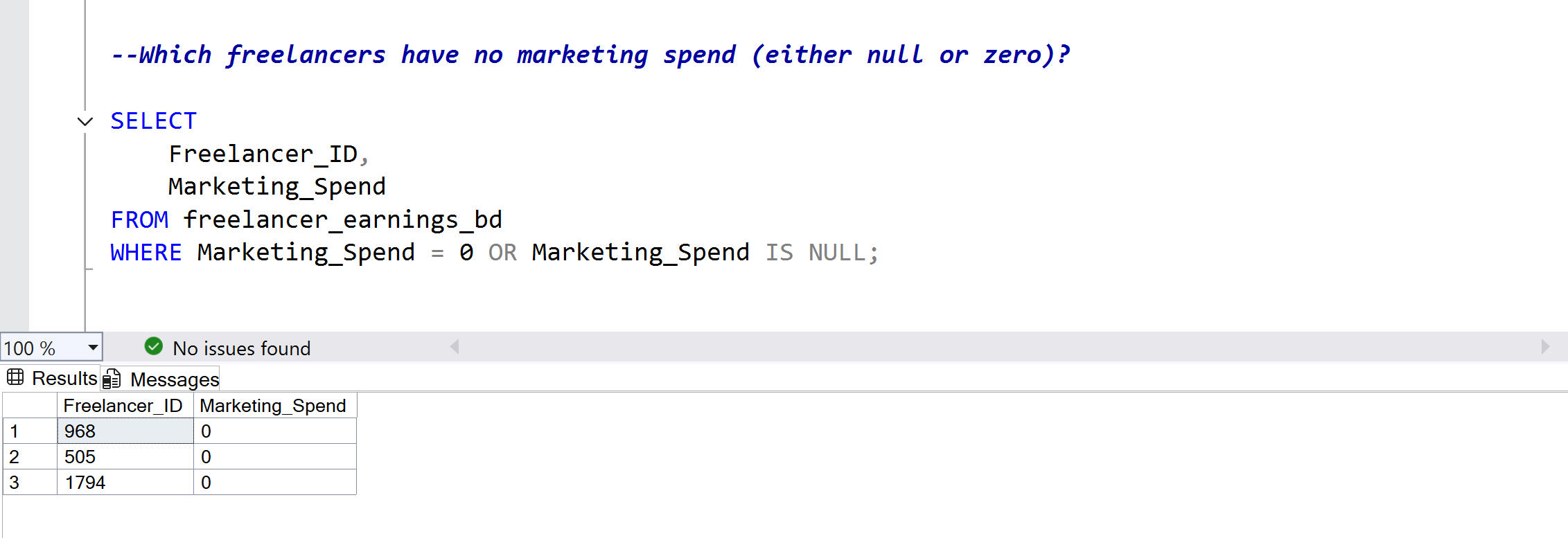 Real business questions applied to freelancer data, demonstrating SQL queries from basic to advanced with documented results for each.